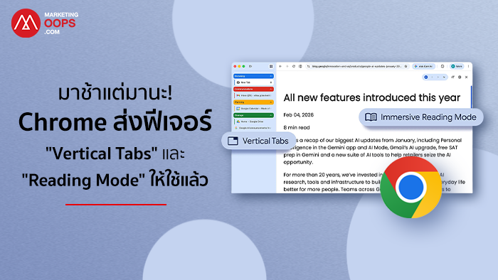 รวมฟีเจอร์ใหม่ Google Chrome ที่คนทำงานต้องรู้! ทั้ง Vertical Tabs (แท็บแนวตั้ง) และ Reading Mode ช่วยจัดระเบียบการทำงาน เพิ่มพื้นที่หน้าจอ และลดสิ่งรบกวน พร้อมเช็กวิธีอัปเดตและสถานะการใช้งานในไทยได้ที่นี่