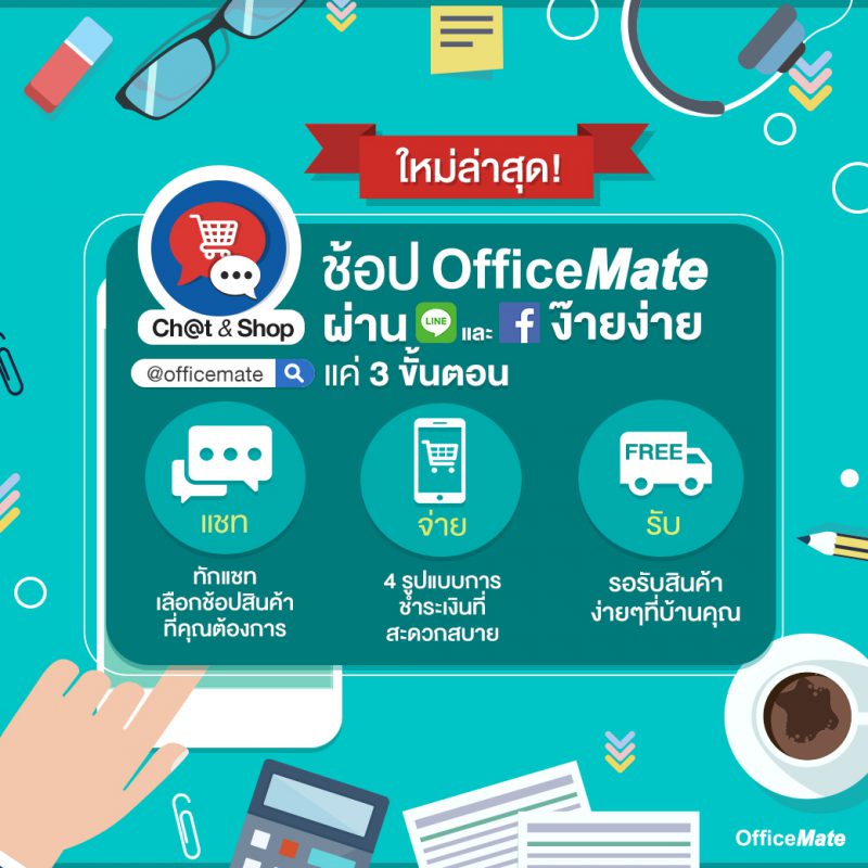 ออฟฟิศเมท เปิดตัวช่องทางการสั่งซื้อสินค้าช่องทางใหม่ เอื้อประโยชน์ให้ลูกค้าสามารถ Chat&Shop ผ่าน LINE และ Facebook ได้สะดวกขึ้น สำหรับช่องทางการสั่งซื้อสินค้าช่องทางใหม่อย่าง “OfficeMate Chat&Shop” นั้น จะทำงานผ่านช่องทาง Line: @OfficeMate และ Facebook Messenger เป็นการเพิ่มความสะดวกสบายและเพิ่มทางเลือกในการช้อปของลูกค้าองค์กรและ SMEs ทั่วประเทศที่นิยมช้อปสินค้าผ่านโทรศัพท์มือถือมากขึ้น จากเดิมที่มีหน้าร้านออฟฟิศเมทมากกว่า 70 สาขาทั่วประเทศ, ช่องทาง OfficeMate Contact Center 1281 และออนไลน์ผ่านเว็บไซต์ officemate.co.th หรือ OfficeMate Mobile App อยู่แล้ว แต่การเพิ่มช่องทางใหม่จะช่วยให้ลูกค้าทั้งองค์กรและทั่วไป สามารถแชท – จ่าย – รับ ได้สะดวกขึ้น เพิ่มช่องทางให้ลูกค้าทำงานง่าย ต้องยอมรับว่าการสั่งซื้อสินค้าในยุคนี้ ต้องแข่งขันกันให้รวดเร็วขึ้น จะรอช้าแบบเดิมไม่ได้อีกแล้ว ดังนั้น การทำงานผ่าน 3 เครื่องมืออย่าง แชท – จ่าย – …