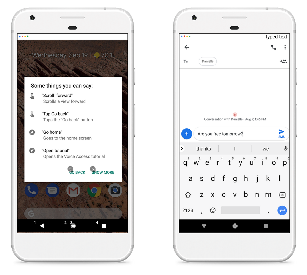 Google ทำ Voice Access แอพพลิเคชั่นสำหรับแอนดรอยด์ที่ให้ผู้พอการใช้งานมือถือสั่งการด้วยเสียงได้แบบไม่ต้องจับมือถือเลย โดย Voice Access เป็นโปรเจกต์ทดลองใช้มา 2-3 ปี ล่าสุดพร้อมใช้งานทั่วไปแล้วแต่ยังจำกัดเฉพาะโทรศัพท์แอนดรอยด์เท่านั้น