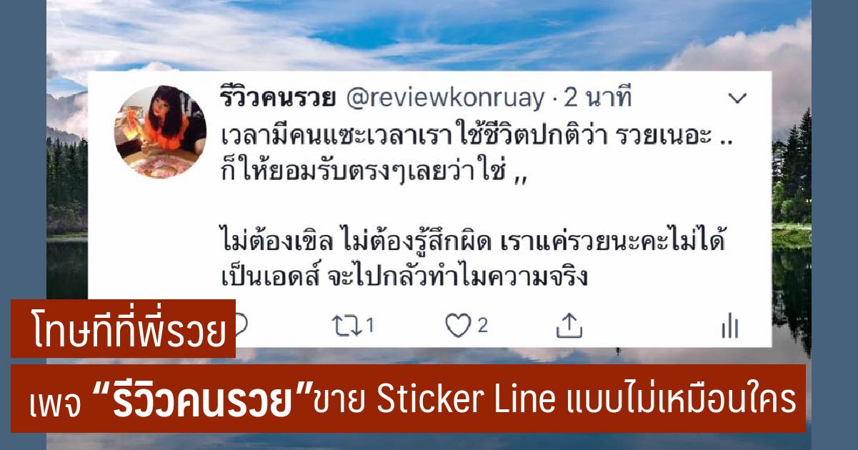 จับเคล็ดวิธีขายสไตล์เพจ “รีวิวคนรวย” เพจ Facebook ที่หลายคนชื่นชอบ ความน่าสนใจของเพจนี้คือการครีเอทข้อความโดนใจที่ทำให้คนไทยแชร์หลายร้อยครั้งต่อวัน แถมเมื่อต้องการขาย Sticker ก็ใช้วิธีเปิดเผยยอดขายที่ทำได้ใน 1 วัน พร้อมกับการแซวว่า “ไปตีกะปอมขายยังรายได้ดีกว่า” ความน่าสนใจของเพจรีวิวคนรวยอยู่ที่วิธีการเรียกรอยยิ้มจากเนื้อหาที่เพจสร้างขึ้น ตัวอย่างเช่นโพสต์ช่วงล่าสุดที่ระบุว่า “เพราะเราก็แค่รวย ไม่ได้เป็นโรค จะไปกลัวทำไมความจริง” ซึ่งเรียกคะแนนการแสดงความรู้สึก 3.8 พันครั้งในเวลา 7 ชั่วโมง มีการแสดงความเห็น 170 ครั้ง ยอดแชร์เกิน 400 ครั้งเรียบร้อย สร้างกระแสขายสติกเกอร์ เมื่อเพจหวังจะขาย Sticker Line เพจรีวิวคนรวยเลือกเปิดเผยรายได้ถล่มทลายที่ทำได้ใน 1 วัน แต่น่าเสียดายที่ผู้อ่านแชร์กันน้อย แม้จะเป็นโพสต์ที่มีเนื้อหาอ่านสนุกก็ตาม สถิติน่าสนใจที่โพสต์นี้เปิดเผยคือ แม้จะมีผู้ติดตามบนเพจ 180,000 คน แต่ยอดจำหน่าย Sticker Line ของเพจคิดเป็น 7,081 เยน หรือ 2,145 บาทใน 1 วัน ถือว่ารายได้ไม่สูงทั้งที่เพจรีวิวคนรวยสามารถ “ฝ่า …