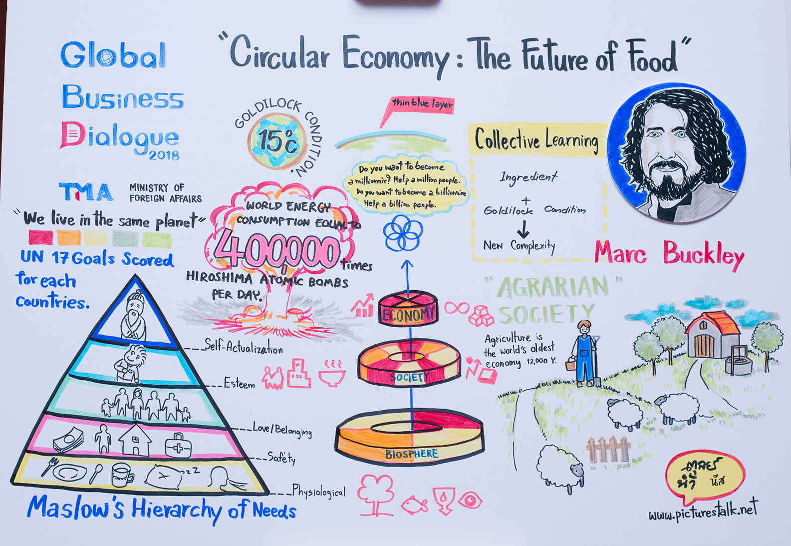 อาหารแห่งอนาคต (The Future of Food) ควรหันมาให้ความสำคัญกับการคิดค้นกระบวนการผลิตที่ยั่งยืนมากกว่าประเภทของอาหาร และควรทำในลักษณะเศรษฐกิจแบบหมุนเวียน (Circular Economy) ที่ยังทำให้แร่ธาตุและวิตามินของอาหารยังอยู่ครบ สูญเสียทรัพยากรให้น้อยที่สุด และหาทางนำทรัพยากรกลับมาใช้ใหม่