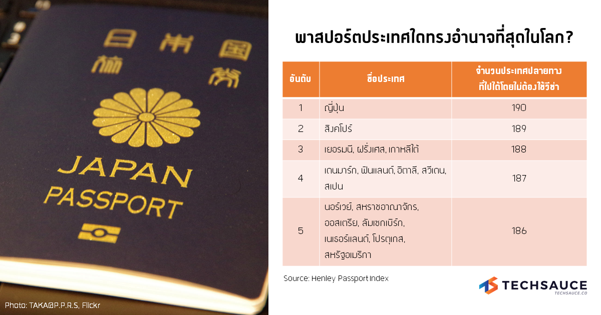 Henley Passport Index รายงานข้อมูลและการจัดอันดับของ "หนังสือเดินทางสัญชาติ" หรือ "พาสฟอร์ต" (Passport) ต่างๆ ทั่วโลก พบว่าในปีนี้ หนังสือเดินทางจากประเทศญี่ปุ่นขึ้นเป็นหนังสือเดินทางที่ทรงอิทธิพลที่สุดในโลก