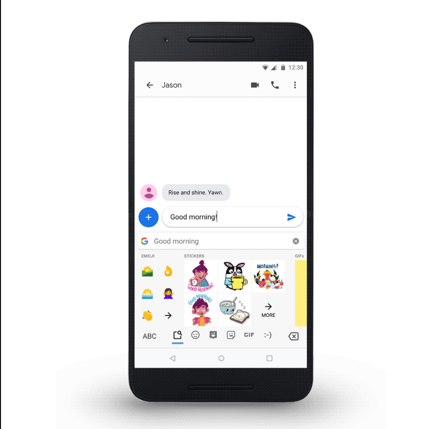 แป้นพิมพ์ Gboard สามารถใช้ค้นหาไฟล์ GIF เพื่อส่งไปยังคู่สนทนา โดยเลือกค้นหาตามอารมณ์ได้ แต่ก็ใช้เวลาพมสมควรในการเลือกสติกเกอร์ภาพเคลื่อนไหวที่ตรงกับอารมณ์ของเราในขณะนั้น ล่าสุด แป้นพิมพ์ Gboard เสนอสติกเกอร์มาให้อัตโนมัติตามคำที่ใช้ในการสนทนา
