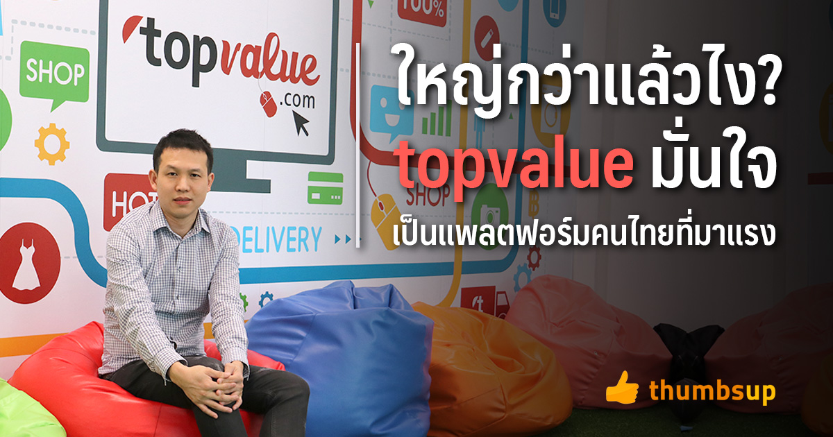 “ถ้าซื้อของแล้วเจอถูกกว่า ยินดีคืนเงิน” ผู้บริหารหนุ่ม ธนากร แซ่ลิ้ม กล่าวเปิดใจกับ thumbsup ในวันที่ไปสัมภาษณ์เขา เพราะอยากขายของถูกและคุณภาพดีให้กับผู้ซื้อ ที่ถึงแม้อีคอมเมิร์ซไทยจะมีการเติบโตจะผูกติดกับเจ้าตลาด แต่แพลตฟอร์มอีคอมเมิร์ซของคนไทยอย่าง topvalue ก็มั่นใจว่ามีโอกาสเติบโตในธุรกิจได้เช่นกัน **กรณียังไม่เปิดใช้สินค้า และไม่ใช่การลดกระหน่ำแบบนาทีทอง จุดเริ่มต้นการทำธุรกิจ ก่อนหน้าจะมาทำ topvalue คุณธนากรทำธุรกิจอื่นที่ไม่เกี่ยวข้องกับออนไลน์เลย โดยทำธุรกิจเกี่ยวกับเครื่องจักรบรรจุภัณฑ์ และแม่พิมพ์บรรจุภัณฑ์ ซึ่งเรียกได้ว่าเป็นงานในส่วนออฟไลน์มากๆ แต่คิดว่าออนไลน์คือโอกาส เพราะช่วงนั้นเทรนด์การชอปปิ้งออนไลน์ในต่างประเทศเริ่มที่จะเข้ามาแล้ว ทำให้มั่นใจว่าการซื้อขายจะเคลื่อนจากออฟไลน์ไปในออนไลน์แน่ๆ มีการลองผิดลองถูก ในช่วงแรกได้ปั้นตัวเองเป็น Marketplace แต่ก็พบว่าไม่เหมาะกับธุรกิจ เพราะต้องเป็นเครือบริษัทยักษ์ใหญ่ที่มีเงินทุนมหาศาลในการโฆษณาจึงจะทำได้ จนทำให้เขาเปลี่ยนมาจับตลาด B2C แล้วขายสินค้าเอง โดยตอนนี้เน้นขายเครื่องใช้ไฟฟ้าเป็นหลัก พร้อมสโลแกนว่า ” ช้อปเครื่องใช้ไฟฟ้าราคาคุ้มค่า ที่ topvalue ” ขายเครื่องใช้ไฟฟ้าราคาคุ้มค่า แต่ว่าถูกกว่าที่อื่น อีคอมเมิร์ซคือโอกาสขนาดใหญ่ มองว่าอีคอมเมิร์ซนั้นมีโอกาสโตแน่นอน เพราะตลาดมันใหญ่มาก อย่างการที่เมื่อก่อนคนไปซื้อของที่ห้างสรรพสินค้า แต่จริงๆ ห้างสรรพสินค้าใช้ต้นทุนสูงมาก ซึ่งอีคอมเมิร์ซเป็นธุรกิจที่ใหญ่มาก หากเมื่อก่อนที่ทำธุรกิจบรรจุภัณฑ์ที่ทำเต็มที่แค่ไหนมูลค่าตลาดก็อาจจะมากสุดพันล้านบาท ไม่สามารถขยายไปได้มากกว่านี้แล้วต่างจากธุรกิจอีคอมเมิร์ซ ซึ่งเรายังมีโอกาสและคิดว่าควรจะย้ายมาทำธุรกิจด้านนี้ดีกว่า โดยเลือกเข้าสู่การขายออนไลน์แทนการทำห้างสรรพสินค้า เพราะก่อนนี้มีห้างหลายแห่งแล้วที่ทำกันมานานจนเหมือนก่ออิฐมา 50 ปี …