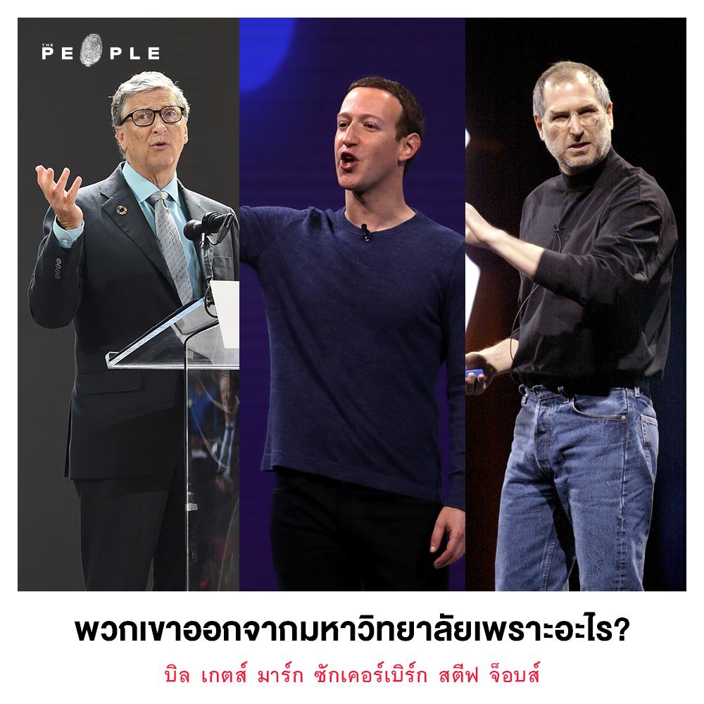 บิล เกตส์, มาร์ก ซักเคอร์เบิร์ก และสตีฟ จ็อบส์ ออกจากมหาวิทยาลัยเพราะอะไร? . ถ้าถามว่า การศึกษา คือคำตอบเดียวในการเข้าถึงความสำเร็จหรือไม่? . คำตอบนี้คงตอบว่า ไม่ใช่ เหตุผลเพราะว่า...