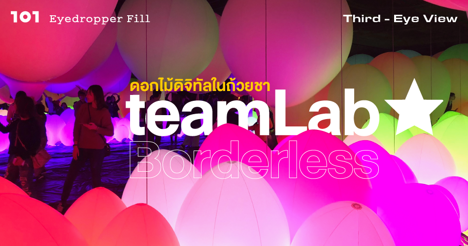 Eyedropper Fill ยังอยู่ที่ญี่ปุ่น ท่องไปตามความล้ำยุคของเทคโนโลยี และความงามของศิลปะ ครั้งนี้พวกเขาพาไปชมนิทรรศการ teamLab Borderless ผลงานของ teamLab กลุ่มคนทำงาน 'ข้ามศาสตร์' จากประเทศญี่ปุ่น รวมทั้งนักออกแบบ โปรแกรมเมอร์ วิศวกร คนทำภาพเคลื่อนไหว ฯลฯ โดยมีผลิตผลที่ส่งออกจาก 'แล็ป' สุดล้ำ เป็นนิทรรศการดิจิทัลอาร์ตที่โดดเด่นเรื่องความสนุก และเปิดให้คนดู 'เล่น' กับชิ้นงานได้