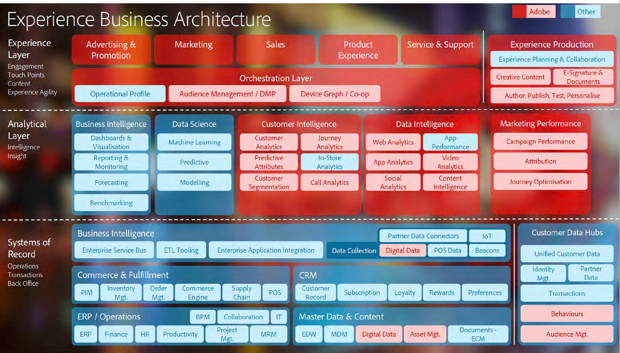 แกะกล่อง Adobe Marketing Cloud จะแบ่งเป็น Module ต่างๆคือ Adobe Media Optimizer คือ - การซื้อ Programmatic ad - Real-time bided - การ Optimization ad spend ปรับโยกเงินใน Media - การทำ Attribution Tracingระหว่าง display, search and social เพื่อการดู Report ที่แม่นยำ - การ Centralized campaign เพื่อการบริการจัดการ efficiency Adobe Target - การทำ Multivariate Testing, A/B Testing - การทำ Web Visitor Segmentation - การ Personalization Content - การทำ look alike modeling (With Adobe Audience Manager) Adobe Audience Manager - การรวม Online & Offline Data - การ Centralized profile กับ CRM database - การ Sync Data กับ 2nd party (เช่น Partner) และการ Enrich Data กับ 3rd party (Ad network ซื้อผ่าน Data Broker เช่น IOTA)