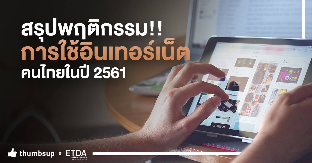 ETDA Thailand ได้ทำการสํารวจพฤติกรรมผู้ใช้อินเทอร์เน็ตในประเทศไทย ปี 2561 (ข้อมูลล่าสุดเมื่อวันที่ 25 กุมภาพันธ์ 2562) จากหลากหลายเพศ และหลายเจนเนอเรชั่น ซึ่งพบการใช้งานอินเตอร์เน็ตที่น่าสนใจสำหรับเหล่านักการตลาดที่ต้องการเข้าใจพฤติกรรมของชาวโซเชียลให้มากยิ่งขึ้น Social Media ยอดนิยม พบว่า YouTube, Line และFacebook ยังคงเป็นสื่อสังคมออนไลน์ยอดนิยมที่ครองใจคนไทยในยุคนี้ และมีผู้ใช้งานนำเป็น 3 อันดับแรก โดยมีสัดส่วนผู้ตอบที่ใกล้เคียงกัน YouTube (ร้อยละ 98.8) LINE (ร้อยละ 98.6) Facebook (ร้อยละ 96.0) Facebook Messenger (ร้อยละ 88.4) Instagram (ร้อยละ 67.2) Pantip ซึ่งเป็น ชุมชนออนไลน์หนึ่งเดียวของไทย (ร้อยละ 64.2) Twitter (ร้อยละ 43.0) WhatsApp (ร้อยละ 10.6) จำนวนการใช้งานอินเทอร์เน็ตต่อวัน ในปีน้ีผู้ใช้อินเทอร์เน็ตมีการใช้งานอินเทอร์เน็ตมากกว่าปีที่ผ่านมาถึง 3 ชั่วโมง 30 …