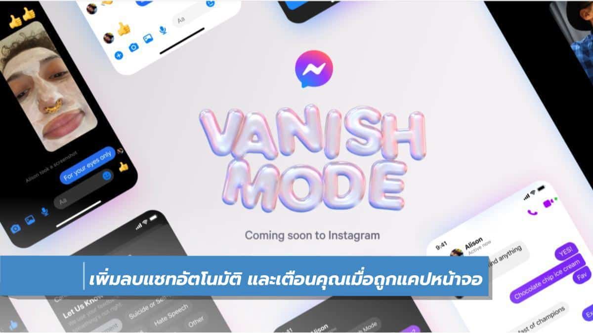 ฟีเจอร์ใหม่ปลอดภัยและเป็นส่วนตัวมากกว่าเดิม facebook ig คอยเตือนคุณเมื่อถูกแคปหน้าจอห้องแชท และเพิ่มลบข้อความแชทอัตโนมัติ Vanish Mode