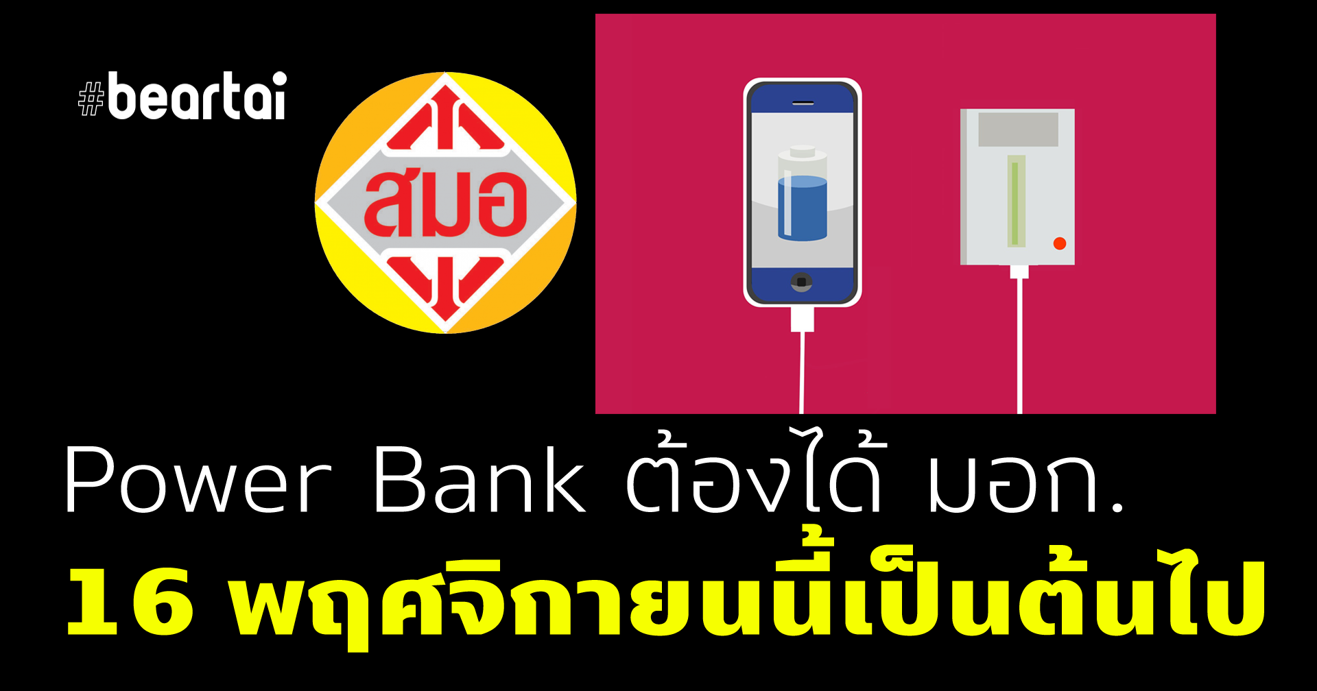 สำนักงานมาตรฐานผลิตภัณฑ์อุตสาหกรรม (สมอ.) ได้ข้อสรุปกรณี Power Bank แล้ว เพื่อความปลอดภัยในการใช้งาน นับตั้งแต่ 16 พฤศจิกายนนี้ Power Bank ที่วางจำหน่ายในประเทศไทย ต้องได้รับมาตรฐานอุตสาหกรรมหรือ มอก. ซึ่งผู้ซื้อสินค้าสามารถดูได้ง่ายๆ จากตรา มอก. 2879-2560 ที่ตัวผลิตภัณฑ์และบรรจุภัณฑ์ เพื่อยืนยันมาตรฐานความปลอดภัย ทั้งผู้ผลิต นำเข้า และผู้จำหน่ายที่ฝ่าฝืน ต้องระวางโทษตามกฎหมาย จำคุกไม่เกิน 2 ปี หรือปรับไม่เกิน 2 ล้านบาท หรือทั้งจำทั้งปรับ *แต่ทั้งนี้สินค้าที่ผลิต และนำเข้ามาก่อนหน้าวันดังกล่าว ยังสามารถจำหน่ายได้ตามปกติ อ้างอิง: สำนักงานมาตรฐานผลิตภัณฑ์อุตสาหกรรม – สมอ. เนื้อหาที่เกี่ยวข้อง QBracelet แบตเตอรี่พกพาแบบสวมใส่ได้ มาแบบ 3 in 1 “WorldSIM Tri-Fi” อุปกรณ์ใหม่ที่มาพร้อมกับ Wi-Fi router, External storage และ power bank ในตัว เจอกันที่ CES 2015! Lenovo เตรียมเปิดตัว “ThinkPad Stack” อุปกรณ์เสริมสำหรับแล็ปท็อป พบกับ “Solar Paper” ที่ชาร์จไฟพลังงานแสงอาทิตย์ที่บางเฉียบที่สุดในโลก !!!