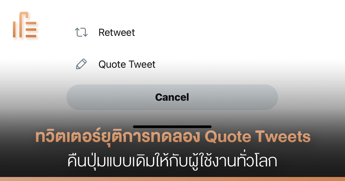 เมื่อเดือนตุลาคมทวิตเตอร์ได้ทดลองเปลี่ยนปุ่ม Retweets ให้เป็น Quote Tweets ชั่วคราว เพื่อรับมือกับข่าวปลอมในช่วงการเลือกตั้งประธานาธิบดีสหรัฐปี 2020 โดยหวังให้ผู้ใช้ทบทวนการรีทวีตสิ่งที่ต้องการจะแชร์ให้รอบคอบมากขึ้น โดยทวิตเตอร์เผยผลการทดลองครั้งนี้ว่า “ปริมาณการ Quote เพิ่มขึ้น 26% แต่ 45% ของข้อความที่ถูก Quote เขียนแค่คำเดียว (single-word) และ 70% มีน้อยกว่า 25 ตัวอักษร” ในทางกลับกัน ปริมาณการแชร์ข้อความ (Retweets) ลดลงไป 23% แสดงให้เห็นว่าการทดลองครั้งนี้ช่วยให้คนแสดงความคิดเห็นมากขึ้นและลดการแพร่กระจายของข่าวสารอย่างมีนัยสำคัญ ทั้งนี้ ทวิตเตอร์ยอมรับว่าผลของการทดลองไม่ได้มีประโยชน์มากนัก เนื่องจากคนแสดงความเห็นแค่คำเดียว ทวิตเตอร์จึงตัดสินใจคืนปุ่ม Retweet แบบเดิมให้กับผู้ใช้งานทั่วโลก ที่มา Twitter
