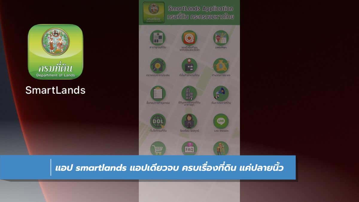 เรื่องที่ดินต้องมีแอปนี้ติดไว้บนมือถือ แอปกรมที่ดิน smartlands แอปพลิเคชั่น ที่รวมทุกบริการเรื่องที่ดินผ่านทางสมาร์ทโฟน หรือแท็บเล็ต