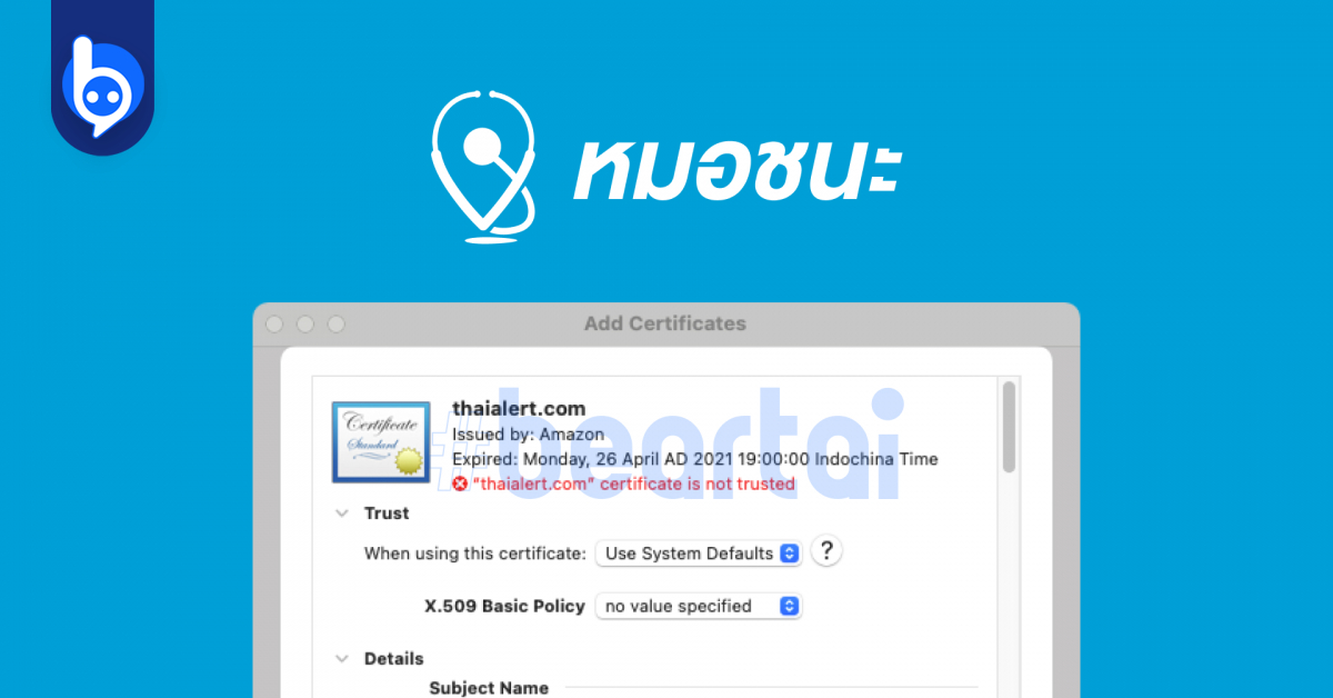 เมื่อวานนี้ หลาย ๆ คนถ้าได้ตามข่าวอาจจะพบว่าแอป ‘หมอชนะ’ ที่มีการรณรงค์จากทางภาครัฐให้ใช้งานในช่วงวิกฤตโควิด-19 ไม่สามารถเข้าใช้งานได้มาตั้งแต่เมื่อวันก่อน เป็นระยะเวลา 1-2 วันแล้ว ‘หมอชนะ’ เป็นแอปที่ถูกสร้างขึ้นโดยทีมจิตอาสาตั้งแต่ต้นวิกฤตโควิด-19 เมื่อปีที่แล้ว ก่อนจะส่งไม้ต่อให้ทางภาครัฐดูแลอย่างเต็มรูปแบบเมื่อต้นปีที่ผ่านมา ล่าสุดจากการตรวจสอบพบว่าใบอนุญาต (Certificate) ที่ไว้ใช้เพื่อการเชื่อมต่อเซิร์ฟเวอร์รับส่งข้อมูลอย่างปลอดภัยกับเว็บไซต์ thaialert.com ได้หมดอายุลงไปในวันที่ 26 เมษายน เวลา 19 นาฬิกา หรือ 1 ทุ่มตรง เมื่อเทียบกับไทม์ไลน์แล้ว หลาย ๆ คนก็อาจจะเข้าถึงแอปไม่ได้ตั้งแต่เวลาดังกล่าว ถึงตอนนี้ก็เป็นระยะเวลาเกือบ 2 วันแล้ว ทั้งนี้ การที่จะกลับมาใช้งานได้ ต้องรอการอัปเดตแอปพลิเคชันจากสโตร์ เนื่องจากใบอนุญาตดังกล่าวนั้น ถูกแนบมากับตัวแอปนั่นเอง ซึ่งตอนนี้แอป ‘หมอชนะ’ ใน Play Store ได้อัปเดตเป็นเวอร์ชัน 2.0.5 เพื่อแก้ไขปัญหานี้แล้ว ส่วนของ Apple App Store ยังไม่มีอัปเดตในตอนนี้ See alsoIn ข่าววิทยาการโควิด 193 months agoปุ๊บปั๊บรับโชค!! ชาว Seattle โดนโทรเรียกฉีดวัคซีน COVID-19 กลางดึก หลังตู้เย็น รพ. เสีย พิสูจน์อักษร : สุชยา เกษจำรัส เนื้อหาที่เกี่ยวข้อง ราชกิจจาฯ ออกประกาศเพิ่มความเข้มงวดในการติดตั้งแอป “หมอชนะ”