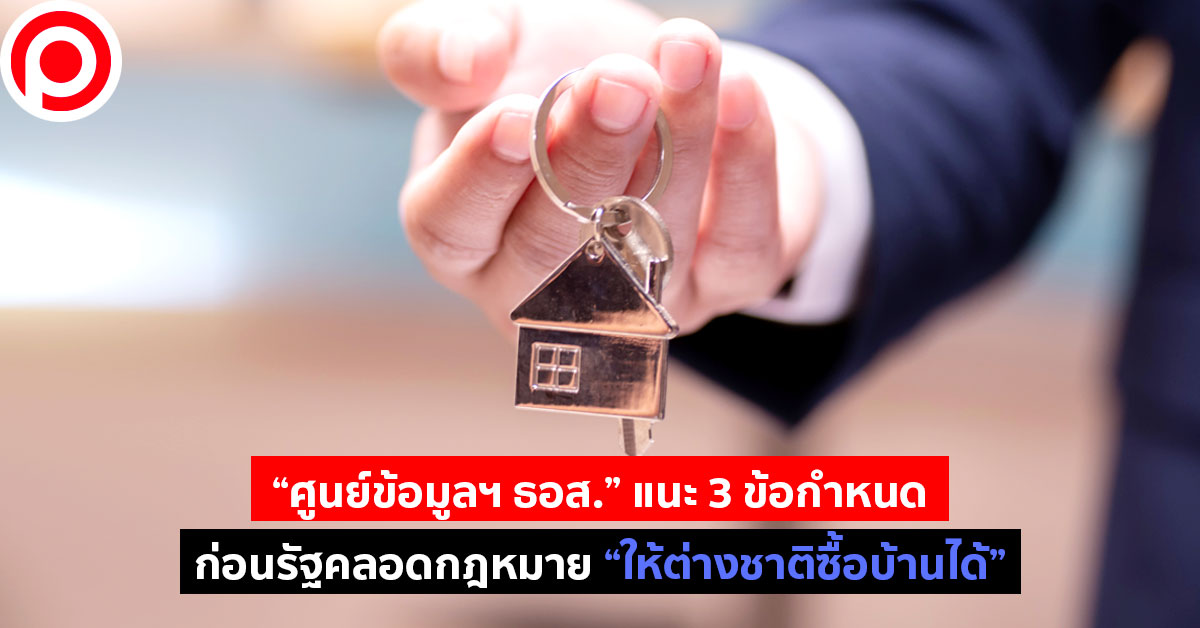 ศูนย์ข้อมูลอสังหาริมทรัพย์ ธนาคารอาคารสงเคราะห์ แนะนำ 3 ข้อกำหนดที่ควรมี หากรัฐจะผลักดันกฎหมายเปิดช่อง “ให้ต่างชาติซื้อบ้านได้” จุดประสงค์เพื่อให้คนไทยยังเข้าถึงที่อยู่อาศัยได้ง่าย และมีสิทธิส่วนใหญ่ในการบริหารโครงการที่อยู่อาศัยของตนเอง พร้อมเปิดข้อมูลปัจจุบันต่างชาติถือครองกรรมสิทธิ์ที่อยู่อาศัยไทยอย่างไรบ้าง