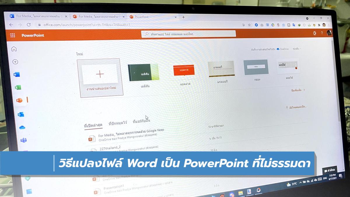 วิธีใหม่วิธีนึงที่คุณอาจลองใช้ วิธีแปลงไฟล์ Word เป็น PowerPoint ด้วย Word เวอร์ชั่นเว็บไซต์บนเว็บเบราว์เซอร์คอมพิวเตอร์ของคุณ