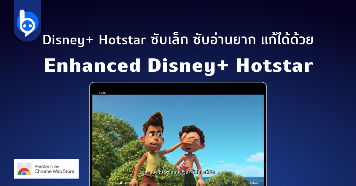 วันนี้เรามีส่วนขยายสำหรับเบราว์เซอร์ที่มีพื้นฐานเป็น Chromium ช่วยยกระดับการแสดงซับไตเติลสำหรับ Disney+ Hotstar ให้ดูดี และอ่านง่ายมากยิ่งขึ้น ชื่อว่า Enhanced Disney+ Hotstar