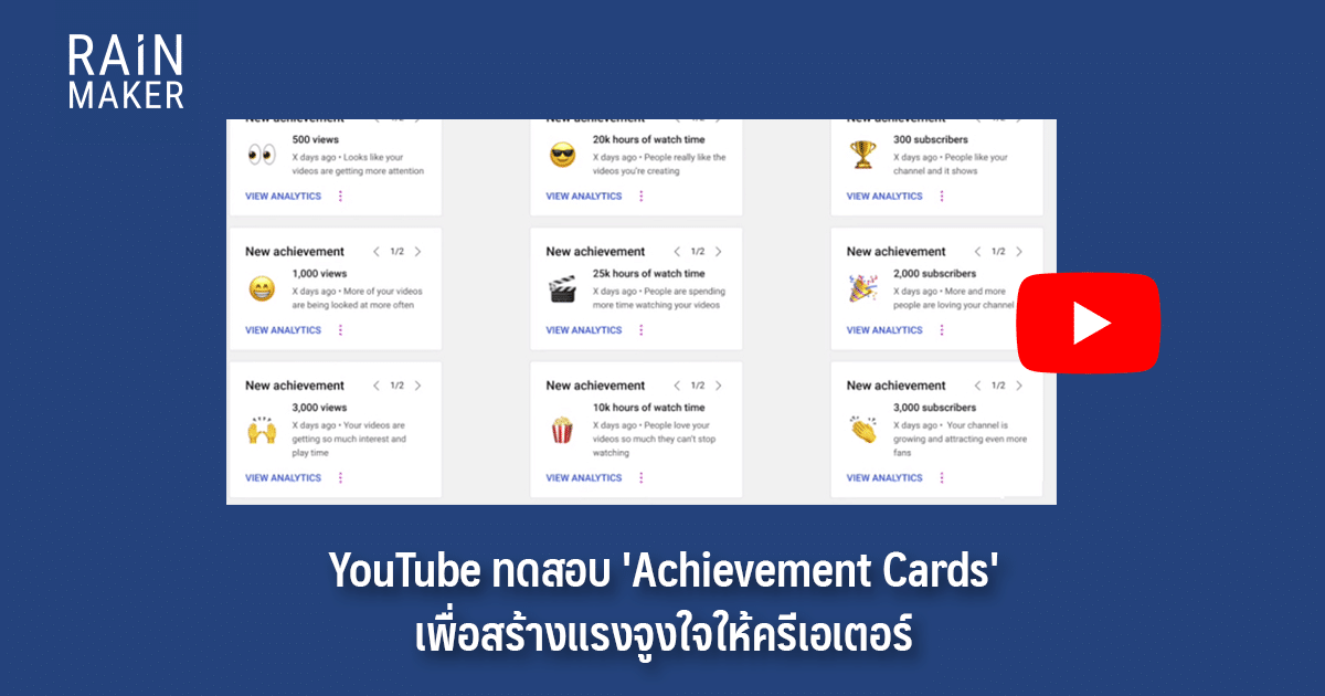 ยูทูบกำลังมองหาสิ่งจูงใจสำหรับครีเอเตอร์ ด้วยการมอบ 'Achievement Cards' หรือการ์ดแห่งความสำเร็จ ที่จะแสดงอยู่ใน YouTube Studio