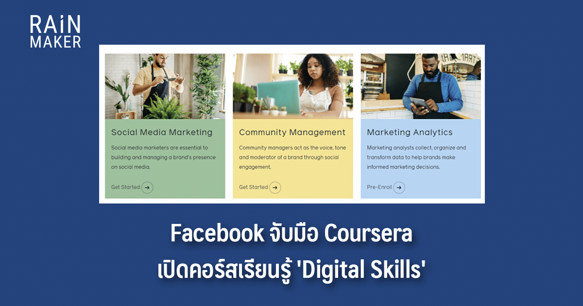 เฟซบุ๊กได้ประกาศเมื่อวาน (วันที่ 20 ก.ค.) ว่าได้ร่วมมือกับ Coursera ในการเปิดคอร์สเรียนเพื่ออาชีพถึง 2 คอร์สด้วยกัน โดยบทเรียนเน้นไปที่เรื่อง