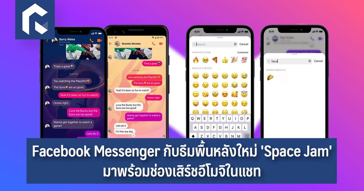 เฟซบุ๊กได้เพิ่มวิธีการเข้าถึงอีโมจิภายในแชท Messenger ให้สะดวกขึ้น โดยการเพิ่มช่องเสิร์ชอีโมจิ พร้อมกับเปลี่ยนธีมพื้นหลังแชทเป็นธีม Space Jam