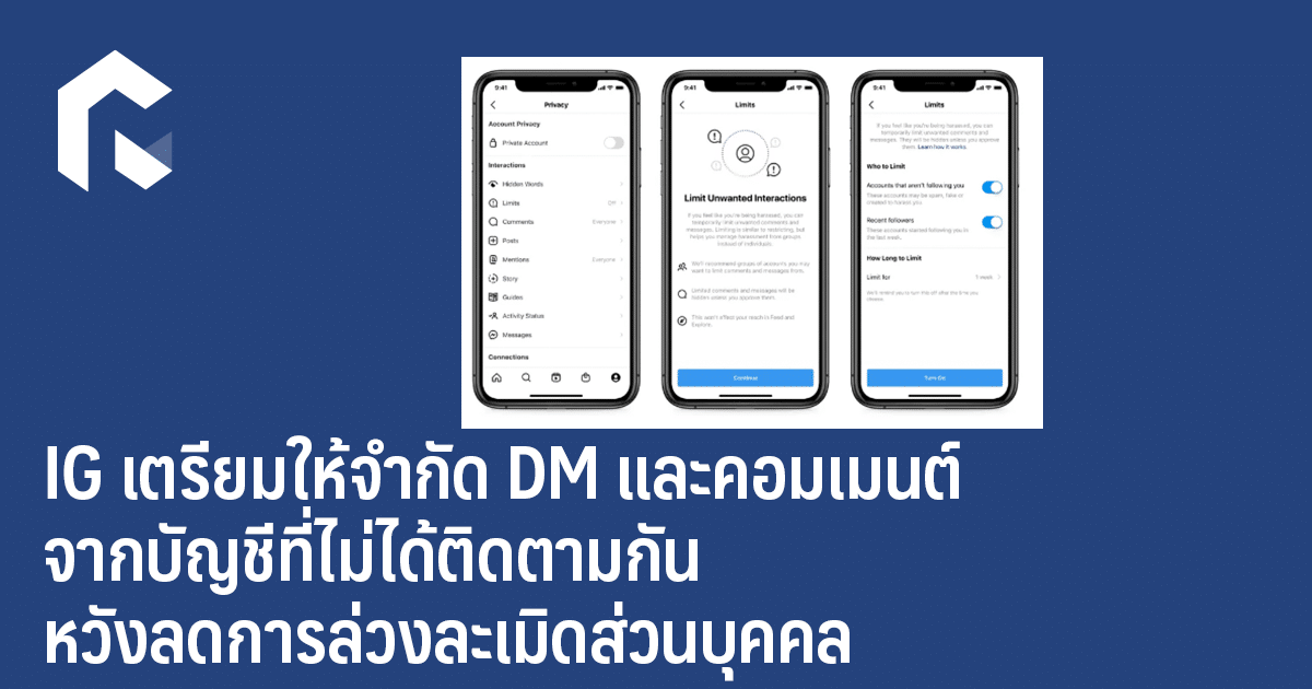อินสตาแกรมเปิดใช้ฟีเจอร์ "ลิมิต" หรือการจำกัดเพื่อไม่ให้ผู้ใช้ที่ไม่ได้ติดตาม หรือติดตามได้ไม่นานนั้นสามารถส่งข้อความหา หรือแสดงความคิดเห็นได้ ทางแอปฯ