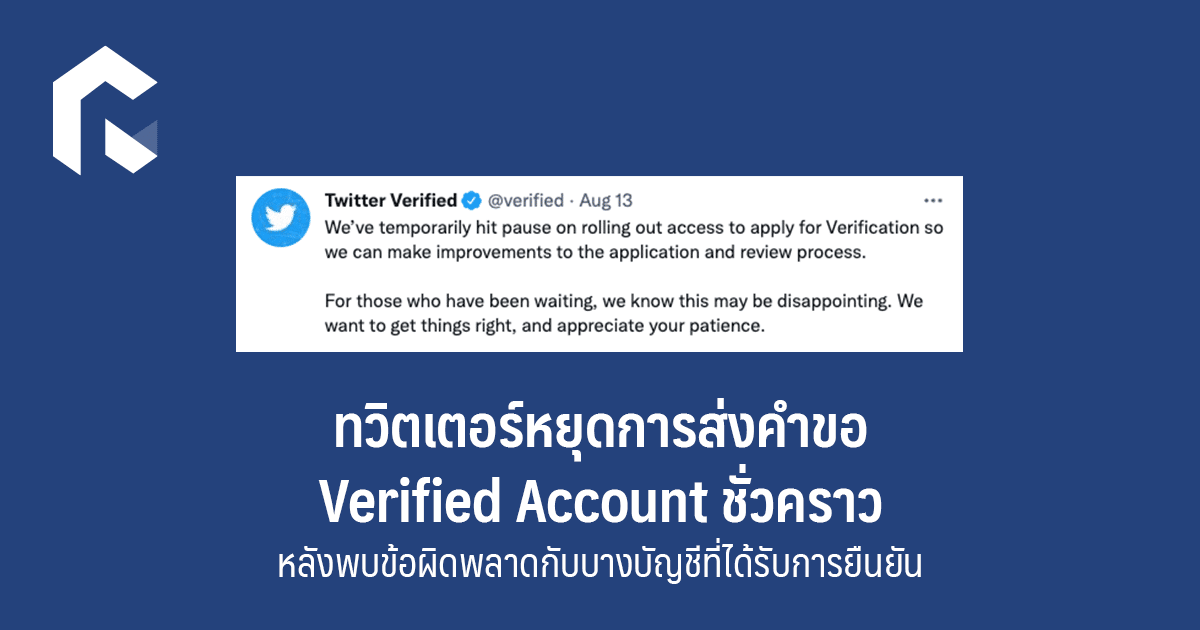 เนื่องจากกระบวนการตรวจสอบการส่งคำขอ 'Verification' หรือคำขอยืนยันบัญชีที่มีเครื่องหมายถูกสีฟ้าของทวิตเตอร์จะมีปัญหา หลังปิดการใช้งานไป 4 ปี