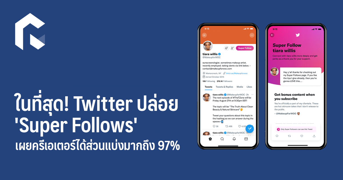 หลังจากเปิดทดสอบฟีเจอร์ 'Super Follows' เป็นเวลาหลายเดือน ตอนนี้ทวิตเตอร์ได้ประกาศปล่อยฟีเจอร์อย่างเป็นทางการกับครีเอเตอร์ที่ถูกเลือกในสหรัฐฯ และแคนาดา
