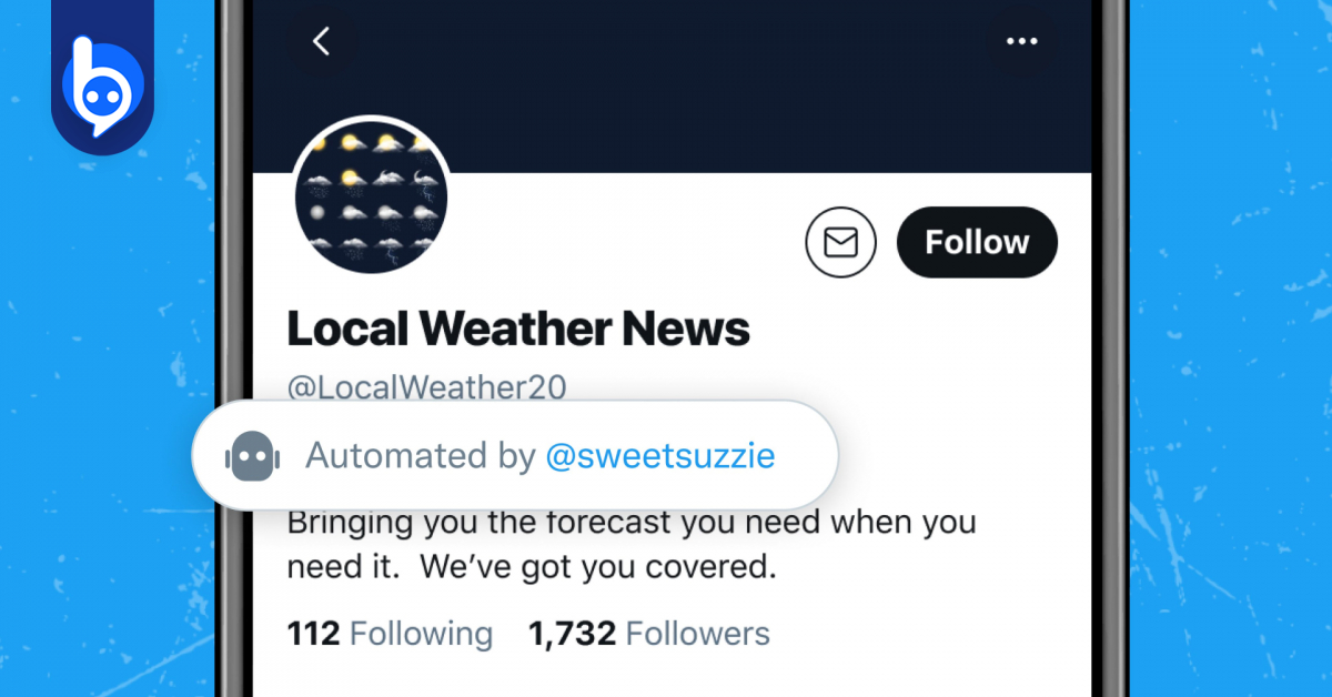 ทวิตเตอร์ (Twitter) ประกาศทดสอบฟีเจอร์ขึ้นป้ายแท็กบนบัญชีอัตโนมัติหรือบัญชีบอต เพื่อให้ผู้ใช้อื่น ๆ สามารถรับทราบได้ว่าบัญชีนั้น ๆ เป็นบัญชีเป็นระบบอัตโนมัติ และเข้าใจจุดประสงค์ของบัญชีดังกล่าว