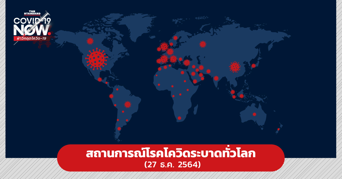 วันนี้ (27 ธันวาคม) ยอดผู้ติดโควิดสะสมพุ่งสูงเกือบ 280 ล้านรายทั่วโลก หลังการแพร่ระบาดผ่านมานานเกือบ 2 ปีแล้ว ยอดผู้เสียชีวิตสูงเกือบ 5.4 ล้านราย