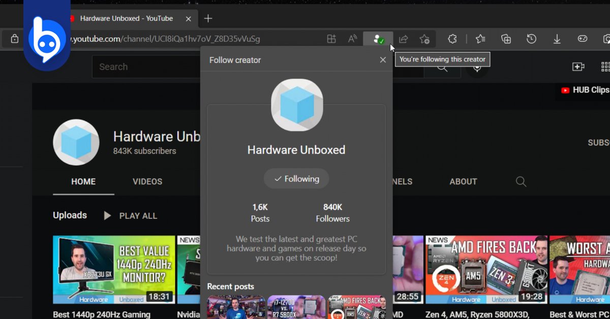 ไมโครซอฟท์ (Microsoft) ได้เริ่มทดสอบการบูรณาการร่วมกับ YouTube บนเบราว์เซอร์ Microsoft Edge ในบิวด์ Canary สำหรับนักพัฒนารุ่นล่าสุด ในฟีเจอร์ที่ชื่อว่า 'Followable Web' หรือเว็บที่สามารถติดตามได้ ให้ผู้ใช้สามารถติดตามเนื้อหาจากครีเอเตอร์หรือยูทูบเบอร์ได้ง่าย ๆ