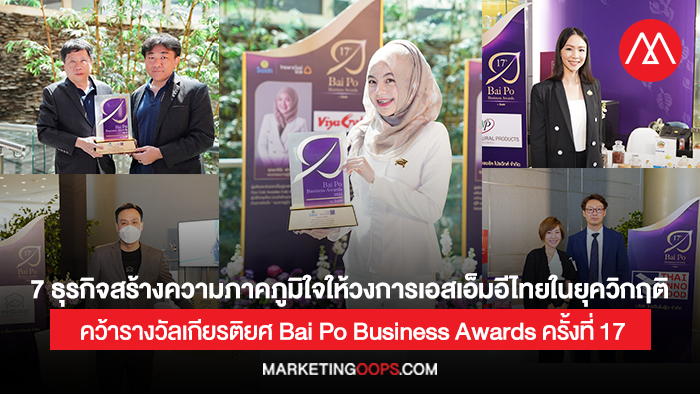 ธนาคารไทยพาณิชย์ ร่วมกับ สถาบันบัณฑิตบริหารธุรกิจศศินทร์ แห่งจุฬาลงกรณ์มหาวิทยาลัย เล็งเห็นความสำคัญในการส่งเสริมเอสเอ็มอีไทยให้แข็งแกร่ง จึงได้มอบรางวัลเกียรติยศ “Bai Po Business Awards by Sasin ครั้งที่ 17” ยกย่องผู้ประกอบการที่สามารถพัฒนศักยภาพและสร้างความแตกต่างอย่างโดดเด่นในมิติที่มีความสำคัญต่อการดำเนินธุรกิจ