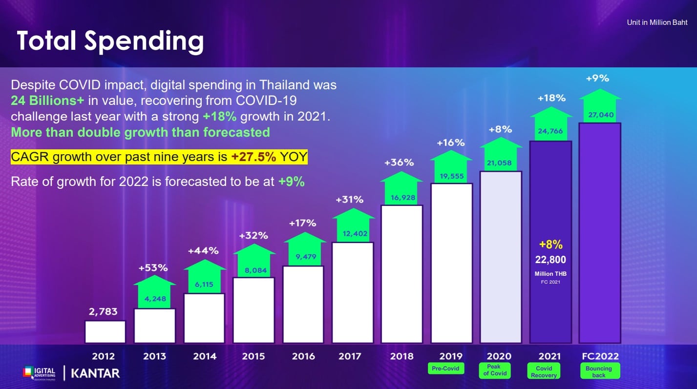 สมาคมโฆษณาดิจิทัล (ประเทศไทย) หรือ DAAT ร่วมกับ คันทาร์ (ประเทศไทย) บริษัทวิจัยชั้นนำ สำรวจมูลค่าเม็ดเงินโฆษณาสื่อดิจิทัลต่อเนื่องจากเป็นปีที่ 10