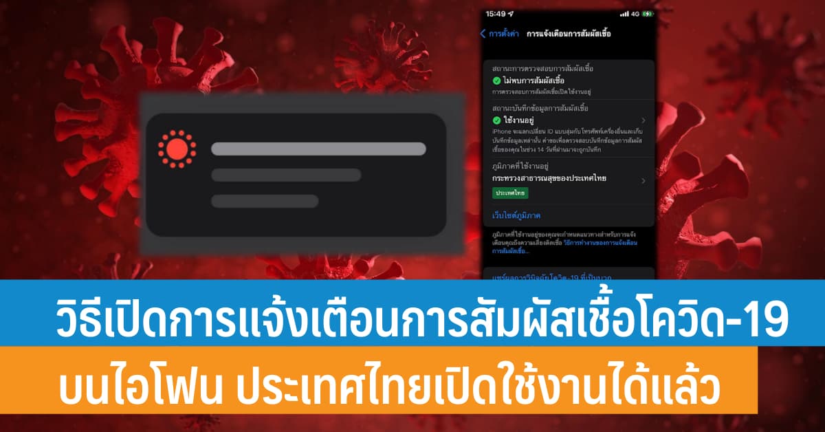 ข่าวดีสำหรับผู้ใช้ไอโฟนชาวไทยเปืดใช้งานการแจ้งเตือนสัมผัสเชื้อโควิดบนไอโฟนได้แล้ว วิธีเปิดการแจ้งเตือนการสัมผัสเชื้อโควิด-19 บนไอโฟน