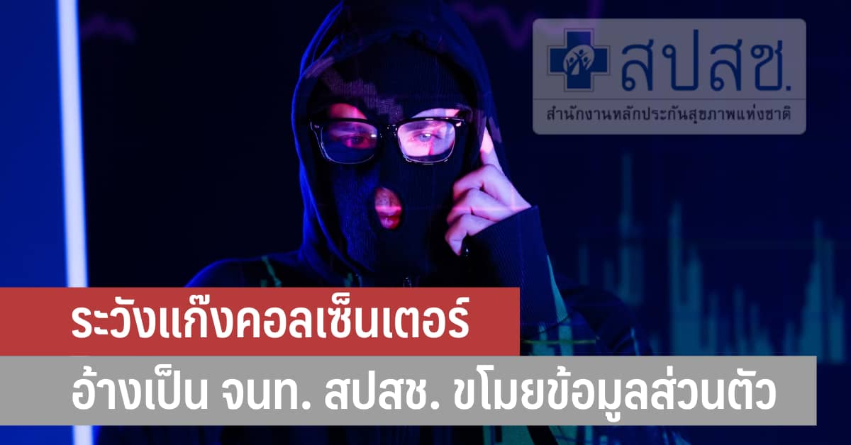 เตือนภัย ระวังแก๊งคอลเซ็นเตอร์ อ้างเป็นเจ้าหน้าที่ สปสช. เพื่อขโมยข้อมูลส่วนตัว สปสช. จะไม่ถามข้อมูลส่วนตัว เพราะผู้ป่วยแจ้งข้อมูลไว้แล้ว
