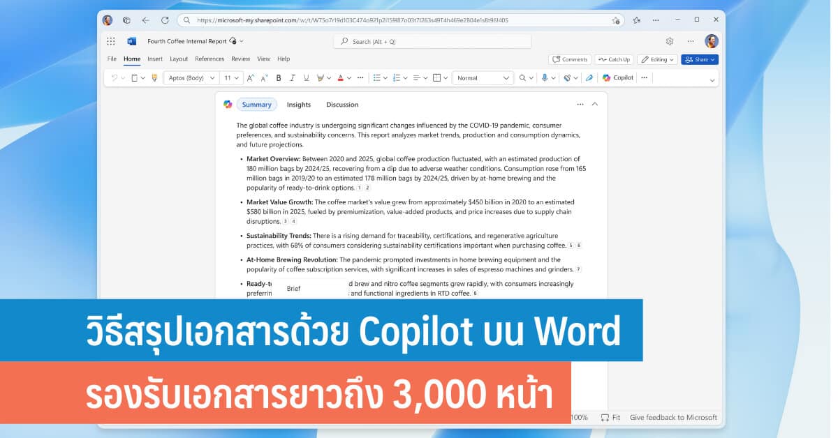 มาแล้ว วิธีสรุปเอกสารด้วย Copilot บน Word คุณสามารถสรุปเนื้อหาสำคัญจากหลายพันหน้าได้ในพริบตา! ใช้ได้ทั้งบนเว็บและแอป Word ล่าสุด