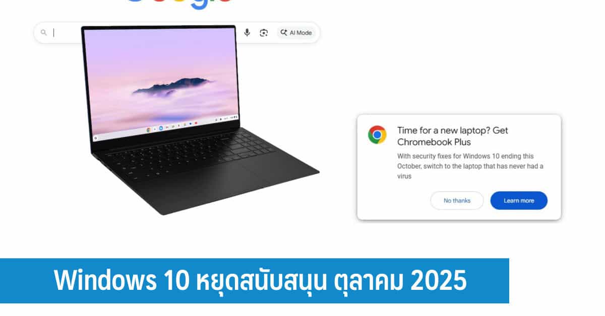 ย้ำอีกครั้ง Windows 10 หยุดสนับสนุน ตุลาคม 2025 อีกไม่กี่วันก็จะสิ้นสุดการสนับสนุนของ Windows 10 ด้าน Google โหมโฆษณาให้ย้ายไป Chromebook
