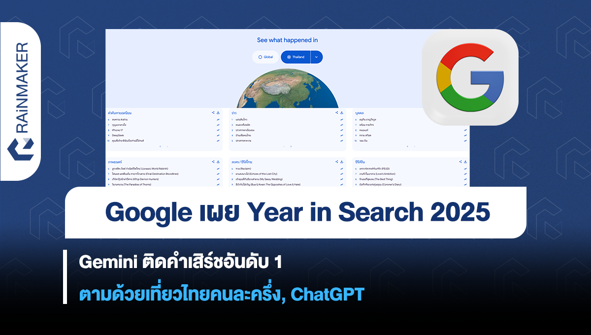 ช่วงเวลาสิ้นปีใกล้เข้ามาแล้ว! ถึงเวลาที่เหล่าแพลตฟอร์มจะรวมรีแคปต่าง ๆ ที่เกิดขึ้นตลอดทั้งปี 2025 เช่นเดียวกับ Google ที่เพิ่งเปิดสถิติ 'Year in Search