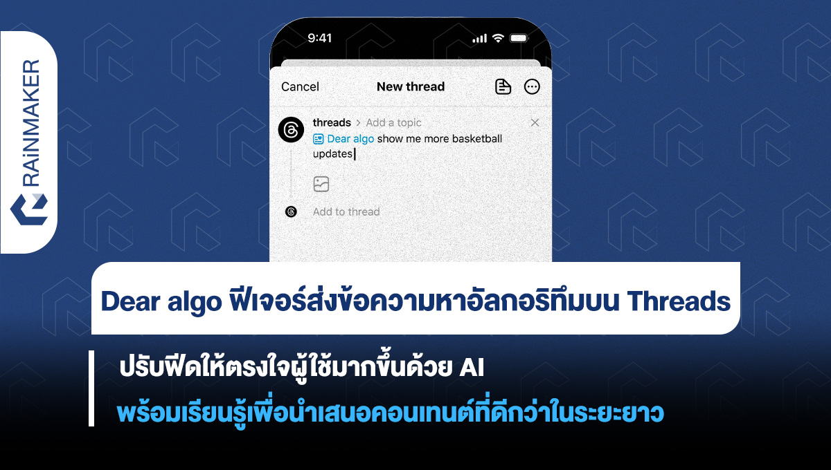 Dear algo ฟีเจอร์ส่งข้อความหาอัลกอริทึมบน Threads ปรับฟีดให้ตรงใจผู้ใช้มากขึ้นด้วย AI พร้อมเรียนรู้เพื่อนำเสนอคอนเทนต์ที่ดีกว่าในระยะยาว
