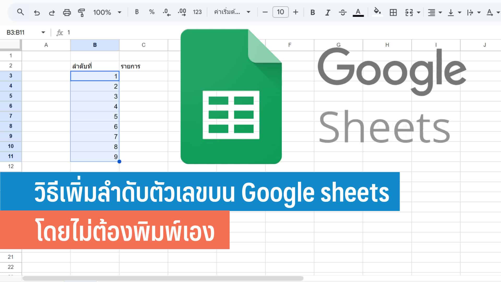 วิธีเพิ่มลำดับตัวเลขบน Google sheets โดยไม่ต้องพิมพ์เอง