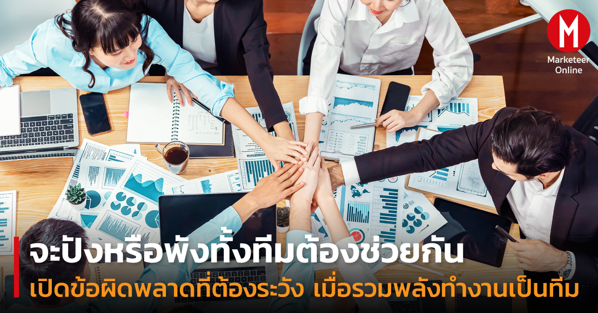 Work/เพราะบริษัทเป็นการรวมตัวและร่วมมือกันทำธุรกิจ โดยมีความก้าวหน้าในการดำเนินงานเป็นหมุดหมายเบื้องต้นความสำเร็จครั้งใหญ่หลักไมล์ที่ต้องไปถึงให้ได้ และชะตากรรมขององค์กรเป็นเดิมพัน   ดังนั้น การทำงานแบบทีมจึงมีความสำคัญสูงสุด ทว่าในทางปฏิบัติกลับไม่ง่าย เนื่องจากมักเผชิญอุปสรรค ความท้าทาย รวมไปถึงข้อผิดพลาดที่แม้เกิดขึ้นบ่อย ๆ แต่ก็ยังถูกมองข้ามอยู่เสมอ บรรทัดจากนี้คือข้อผิดพลาดในการทำงานเป็นทีมที่ควรระวัง และสมาชิกในทีมควรหมั่นสังเกตเพื่อตัดไฟ-สกัดวงจรก่อนงานจะพังไม่เป็นท่า ไม่ชัดเจนช่วงสั่งงาน: ข้อผิดพลาดแรกที่ควรระวังทุกครั้งเมื่อทำงานเป็นทีม คือ การสั่งงานไม่ชัดเจน เพราะจะสร้างความเสียหาย 2 ข้อคือ เกิดการทำงานที่ซ้ำซ้อน และทีมงานแต่ละคนทำงานไปทั้ง ๆ ที่ยังคาใจ งานจึงไม่เดินหน้าเท่าที่ควรจะเป็น และอาจพังครืนลงต่อหน้าทุกคน นี่จึงทำให้หัวหน้าทีมต้องสั่งและกระจายงานให้ชัดเจน ระบุให้เป๊ะว่าใครทำอะไรบ้าง ทำอย่างไรและเป้าหมายอยู่ตรงไหน ขณะที่ลูกทีมก็ควรถามทันทีถ้าไม่เข้าใจ หรือควรจบงานบนโต๊ะให้ได้มากสุดนั่นเอง สื่อสารพลาด: ข้อผิดพลาดถัดมาที่ควรระวังระหว่างทำงานเป็นทีมคือการสื่อสาร ซึ่งเกิดได้จากทั้งปล่อยปละละเลยไม่ตามงานของหัวหน้า ทิ้งให้ลูกน้องทำงานแบบตามมีตามเกิด ไม่ถามว่าขาดเหลืออะไรหรือไม่ ส่วนลูกน้องก็กล้าเข้าไปบอกสิ่งที่อยากให้หัวหน้าเข้ามาช่วย หากบริษัทไหนทำงานกันแบบนี้ ก็ไม่ต้องหวังว่าจะมีความก้าวหน้าเข้ามา ดังนั้น การสื่อสารและประสานงานจึงมีความสำคัญอย่างยิ่งต่อทั้งตัวงานและองค์กร ขาดความเชื่อมั่น: ข้อผิดพลาดสุดท้ายที่ต้องระวังไม่ให้เกิดขึ้นกับการทำงานเป็นทีม คือ การไม่เชื่อมั่นในฝีมือและทักษะของสมาชิกในทีม เพราะจะทำให้เกิดการก้าวก่าย ล้วงลูก หรือติทั้งที่ยังไม่ได้พิสูจน์ฝีมือ ส่วนฝ่ายคนทำงานก็อาจไม่กล้าลงมือทำ โดยความเชื่อมั่นและไว้ใจสำคัญมากต่อการเป็นทีม ดังนั้น เมื่อมอบหมายและกระจายงานแล้วทุกคนควรรับผิดชอบและโชว์ฝีมือให้เต็มที่ แต่ขณะเดียวก็พร้อมช่วยและร่วมแรงร่วมใจกันแก้ไขข้อผิดพลาดที่ไม่คาดคิดด้วย หากทำได้ตามนี้ …