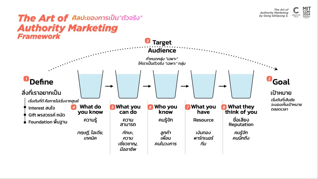 Marketing Insight & Technology Conference 2024 (MITCON2024) เซกชั่น The Art of Authority Marketing: How to Establish Credibility and Trust That Drive Sales หรือ ศิลปะแห่งการสร้างอิทธิพลในใจคน: วิธีการสร้างเครดิตและความน่าเชื่อถือที่นำไปสู่ยอดขาย โดย คุณสิทธิพงศ์ ศิริมาศเกษม CEO and Founder at RGB72 and CREATIVE TALK Authority Marketing คืออะไร Authority Marketing หมายถึง การทำการตลาดด้วยการสร้างเครดิต ความน่าเชื่อถือเพื่อให้ตนเองหรือแบรนด์นั้นเป็นที่จดจำ ถูกมองเป็นตัวจริงในด้านนั้น ๆ ส่วน Authority หมายถึง คนที่มีสิทธิ์จะพูด มีอำนาจมากพอที่จะชี้นำให้คนทำตาม เป็นผู้นำในด้านนั้น ๆ ทั้งนี้ Authority …