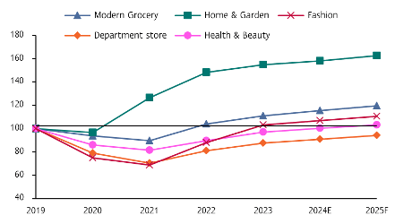 Industry overview กลุ่มธุรกิจ Modern trade ประกอบไปด้วยผู้เล่นหลากหลายประเภท โดยในช่วงที่ผ่านมาธุรกิจยังต้องเผชิญกับการแข่งขันจากร้านค้าออนไลน์ รวมไปถึงต้นทุนสินค้าและการดำเนินงานที่เพิ่มสูงขึ้น ธุรกิจค้าปลีกสมัยใหม่ในไทย (Modern trade) ประกอบไปด้วยผู้เล่นหลากหลายประเภท ทั้งกลุ่ม Modern grocery อย่าง ไฮเปอร์มาร์เก็ต, ซูเปอร์มาร์เก็ต, ร้านสะดวกซื้อ ซึ่งปัจจุบันกลุ่ม Modern grocery เข้ามามีบทบาทมากขึ้นในกลุ่มธุรกิจ Grocery โดยมีส่วนแบ่งอยู่ที่ราว 72% ของร้านค้าปลีกกลุ่ม Grocery ทั้งหมด ซึ่งเป็นสัดส่วนที่สูงขึ้นจากช่วงก่อนการระบาดของ COVID-19 ซึ่งมีสัดส่วนอยู่ที่ราว 64% นอกจากนี้ ธุรกิจค้าปลีกสมัยใหม่ในไทย ยังประกอบไปด้วย ร้านค้าปลีกขนาดใหญ่ เช่น ห้างสรรพสินค้า รวมไปถึงร้านขายสินค้าเฉพาะทาง เช่น ร้านขายสินค้าตกแต่งและซ่อมแซมที่อยู่อาศัยครอบคลุมร้านค้าที่จำหน่ายตั้งแต่วัสดุก่อสร้างไปจนถึงของตกแต่งบ้าน ร้านขายสินค้าเพื่อสุขภาพและความงามที่เน้นการขายผลิตภัณฑ์เพื่อดูแลสุขภาพ รวมไปถึงผลิตภัณฑ์เสริมอาหาร และยารักษาโรค และร้านขายสินค้าแฟชั่น ที่ครอบคลุมไปถึงกลุ่ม Fast fashion, Traditional fashion และ Sportwear เป็นต้น …