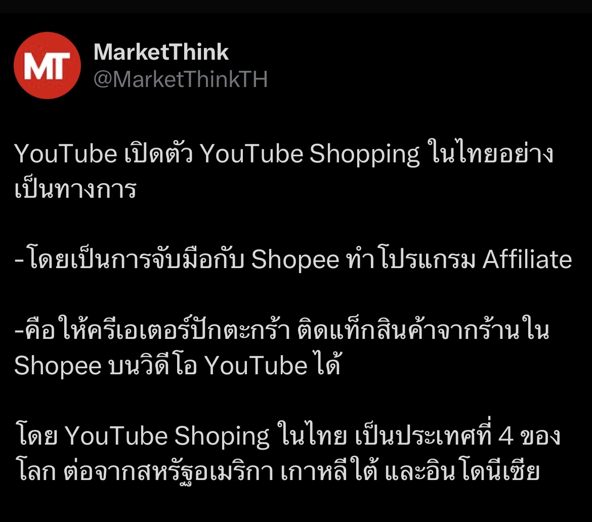 หลังจาก YouTube เปิดตัวฟีเจอร์ใหม่ๆผ่านงาน Made on YouTube เมื่อเดือนกันยายนที่ผ่านมา โดยหนึ่งในนั้นก็คือระบบ YouTube Shopping Affiliate ฟีเจอร์ "ติดตะกร้า" ขายของที่เริ่มทยอยเปิดให้ YouTuber ในไทยได้ใช้กันแล้วตั้งแต่กลางเดือนตุลาคมที่ผ่านมา ล่าสุด Google ประเทศไทย ประกาศเปิดตัว "YouTube Shopping Affiliate" ในประเทศไทยอย่างเป็นทางการแล้ววันนี้!