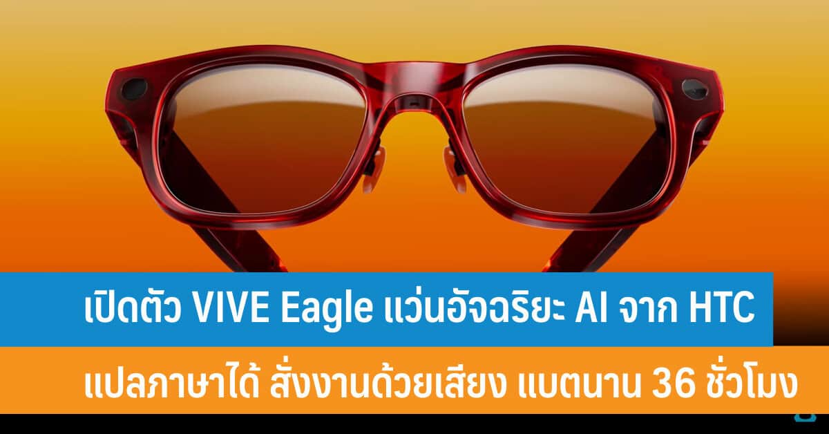 HTC เปิดตัว VIVE Eagle แว่นอัจฉริยะ AI หน้าตาดูเหมือนแว่นตาทั่วไป แต่ในขณะเดียวกันก็มีกล้อง FPV ฟีเจอร์ AI ในตัว และลำโพงเสียงสเตอริโอ