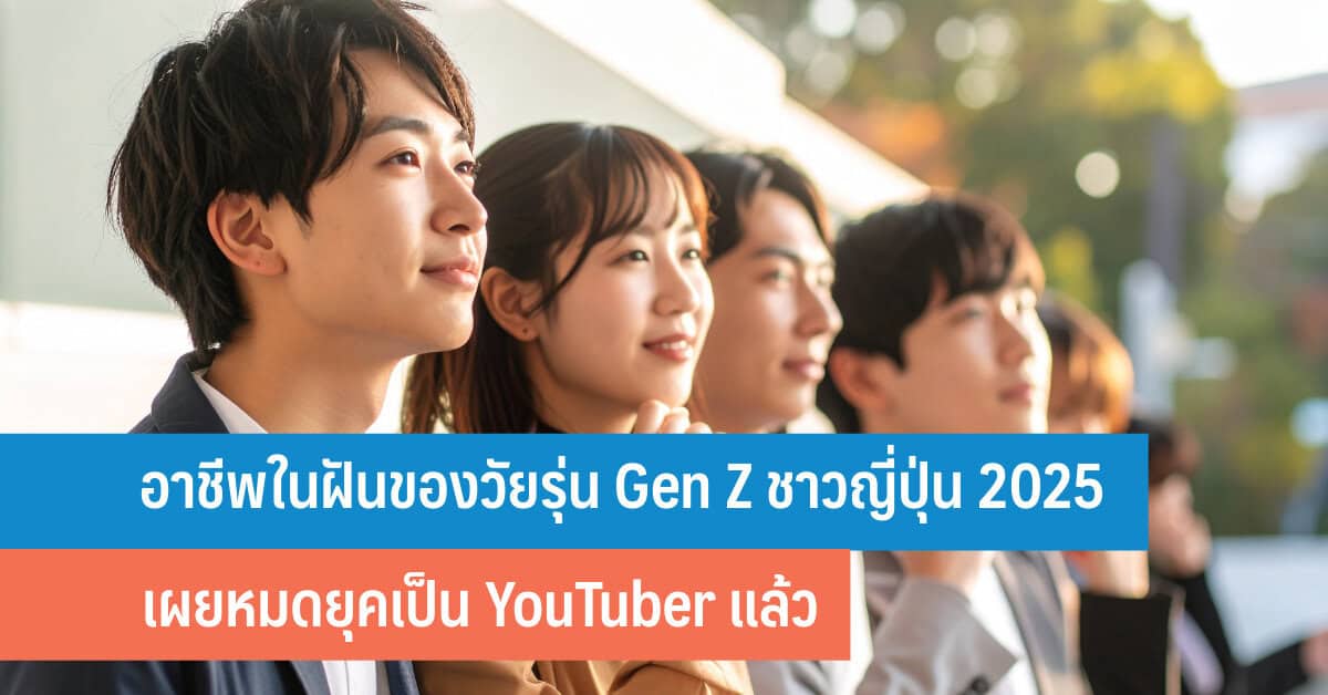 จับตาเทรนด์ อาชีพในฝันของวัยรุ่น Gen Z ชาวญี่ปุ่น ซึ่งเป็นประชากรที่มีคุณภาพ จากผลสำรวจประจำปีของ Sony Life เผย YouTuber หลุดจากอันดับ 1