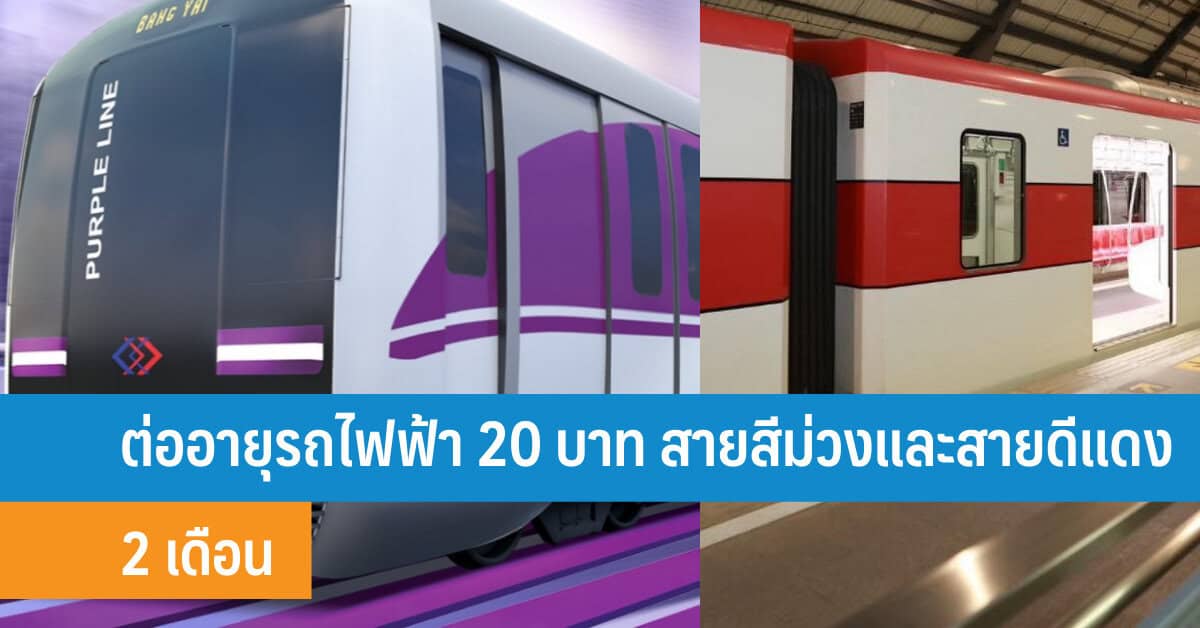 ต่ออายุรถไฟฟ้า 20 บาท สายสีม่วงและสายสีแดงถึง 2 เดือน โดยสิ้นสุดในวันที่ 30 พฤศจิกายน 2568 เพื่อบรรเทาภาระค่าใช้จ่ายของประชาชน