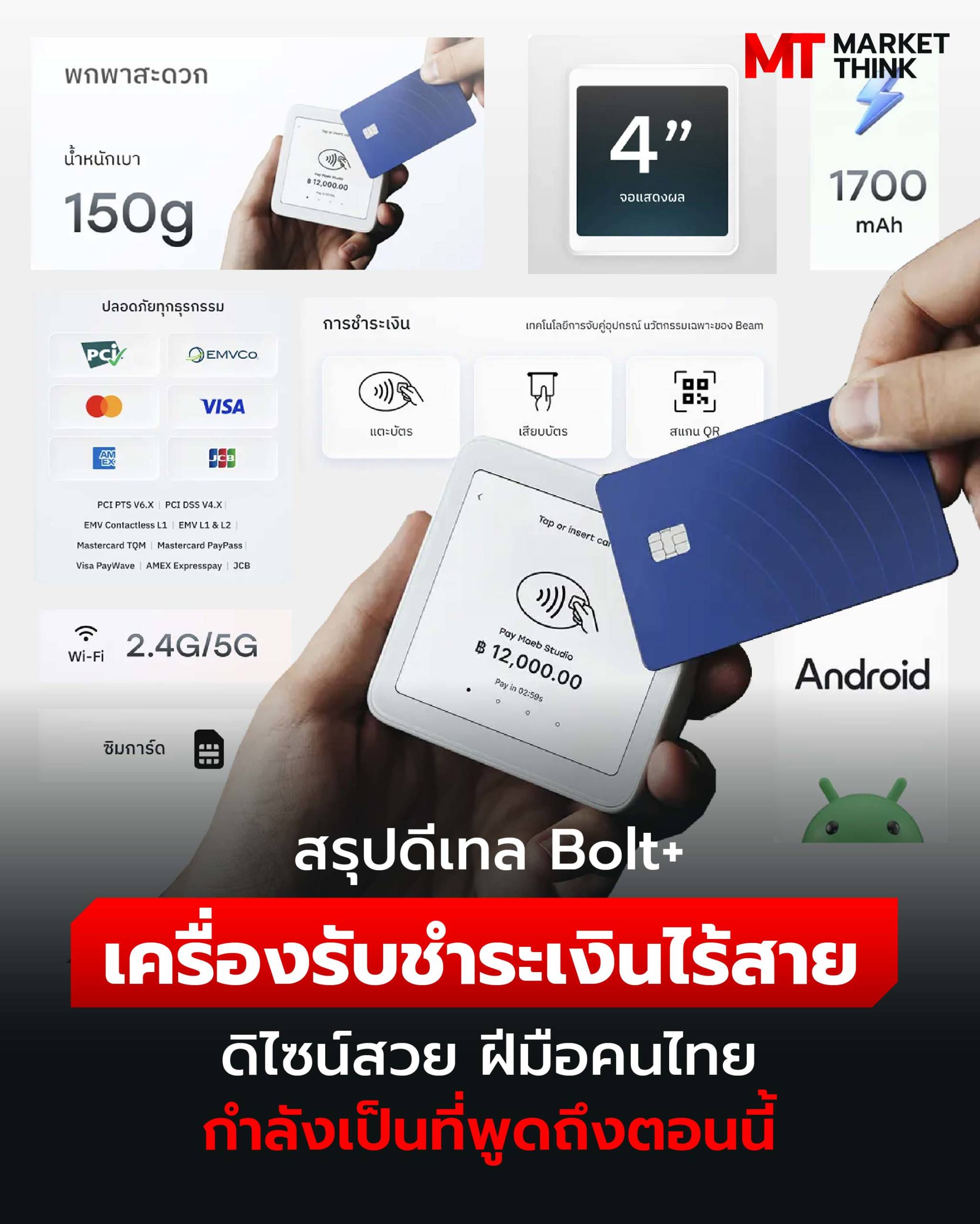 ตอนนี้ เครื่องรับชำระเงินชื่อว่า “Bolt+” ของ Beam สตาร์ตอัปสัญชาติไทย กำลังถูกพูดถึงเยอะบนโลกโซเชียลมีเดีย เพราะมีดิไซน์ที่สวยงาม และใช้การเชื่อมต่อแบบไร้สาย ทำให้สามารถพกไปรับชำระเงินได้ทุกที่