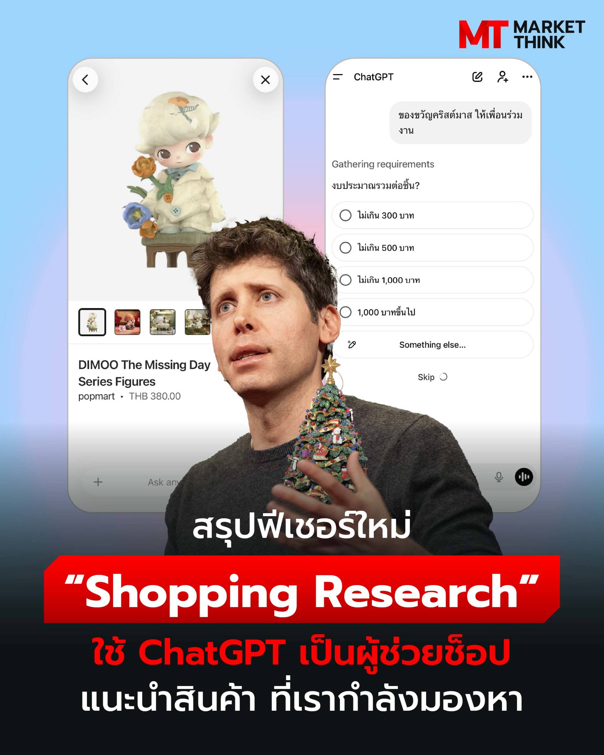 ล่าสุด ChatGPT เพิ่งเปิดตัวฟีเชอร์ใหม่ “Shopping Research” ที่ผู้ใช้งานจะมี AI เป็นเสมือน “ผู้ช่วยช็อปปิง” คอยแนะนำสินค้าที่เรามองหา ให้ตรงใจเรามากที่สุด