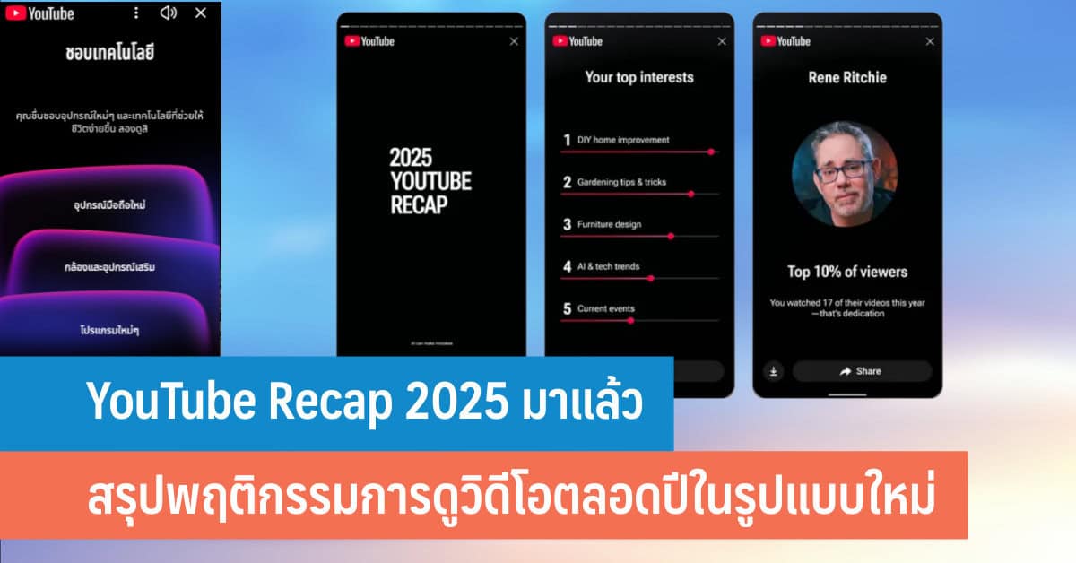 YouTube Recap 2025 มาแล้ว สรุปสถิติการชมวิดีโอและเพลงบน YouTube แห่งปี 2025 ทราบคลิปที่ชอบ แนวที่สนใจ และอารมณ์ตลอดปี 2025