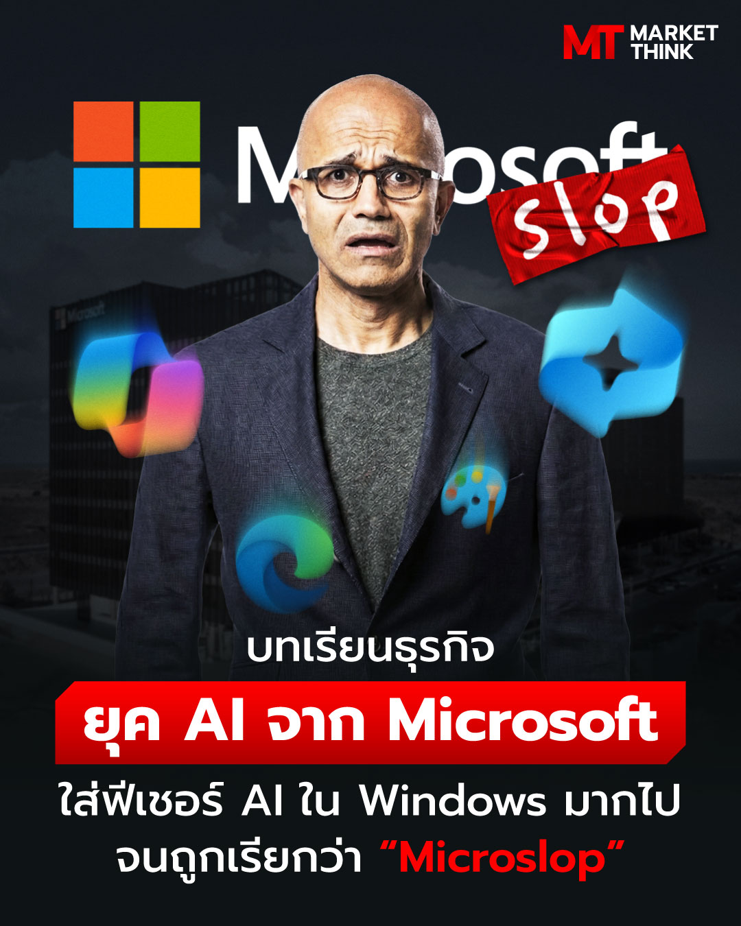 ล่าสุด Microsoft เพิ่งจะถูกตั้งฉายาจากคนทั่วโลกให้เป็น Microslop ซึ่งเป็นการเล่นคำจากคำว่า AI Slop ซึ่งหมายถึงคอนเทนต์คุณภาพต่ำที่สร้างขึ้นด้วย AI