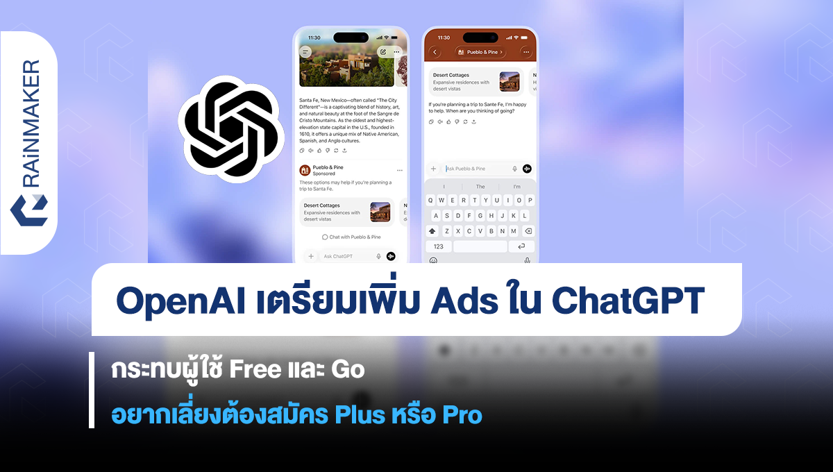 OpenAI เตรียมทดสอบเพิ่มโฆษณาบน ChatGPT ในอีกไม่กี่สัปดาห์ข้างหน้า โดยผู้ใช้ฟรีและ Go ในสหรัฐฯ จะเป็นกลุ่มแรกที่เริ่มเห็นโฆษณาปรากฏอยู่ใต้บทสนทนา